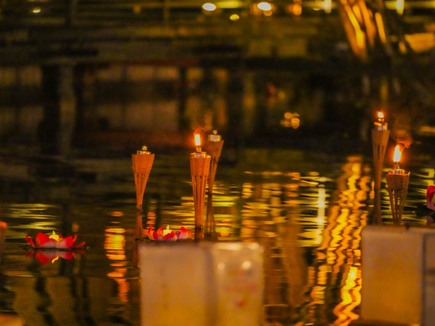 夜幕降临,活动接近尾声,水灯小姐队伍带领众人前往漂水灯。一盏盏精美的水灯缓缓漂入水中,大家纷纷许下新年愿望,期待未来的日子里充满光明与希望。