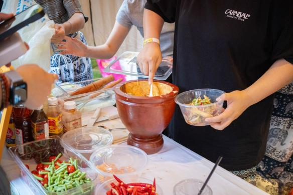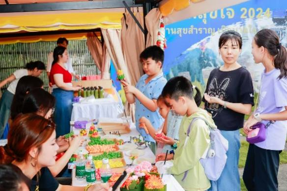 除了引人入胜的舞台表演之外,活动现场还在舞台两侧精心布置了水灯制作摊位和泰国文化游戏区。这些互动环节不仅让来宾亲身体验到泰国水灯的制作过程,更深入地了解泰国丰富的传统文化、特色美食和著名景点,在欢声笑语中体验泰国的风情与魅力。
