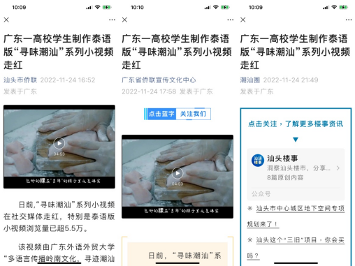 汕头市侨联、广东省侨联宣传文化中心、潮汕圈转载报道