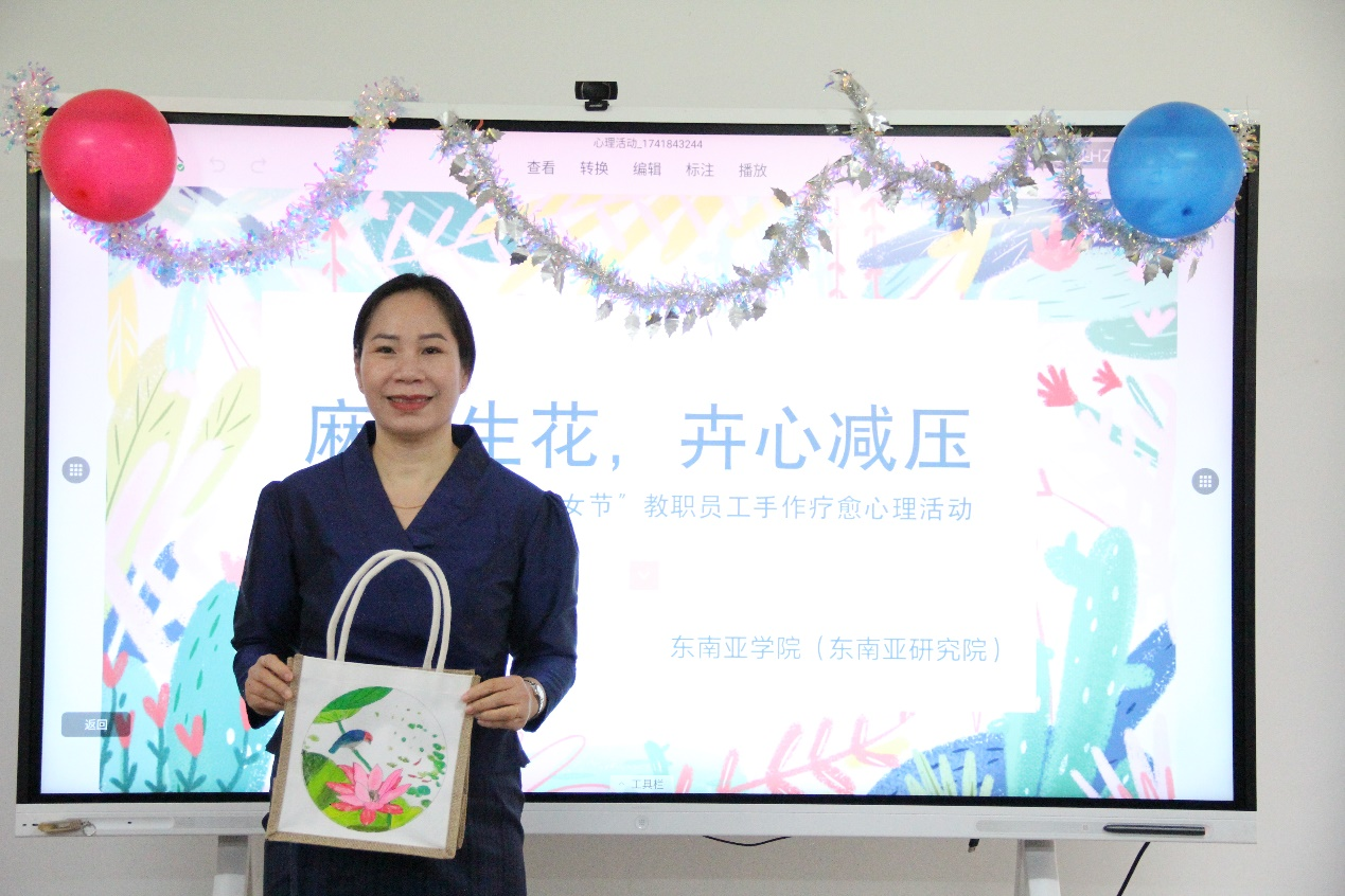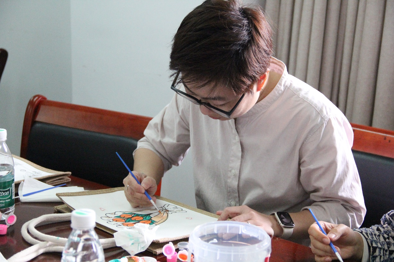 本网讯 为庆祝国际劳动妇女节,3月13日下午,伟德国际1949,伟德国际1949始于英国在伟德国际1949北校区第一教学楼北楼547举办“麻布生花,‘绘’心减压”教职工手作疗愈活动。通过麻布袋创意彩绘,学院教职工在绘画过程中释放压力,感受手工艺与心灵疗愈的融合魅力。