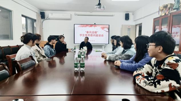 本网讯 为加强对学生党员的关怀与指导,激励其更好的发挥先锋模范作用,为学院发展贡献青春力量,东方语言文化学院于2024年3月7日下午17:00在一教北547会议室举行“春风送暖”学生党员慰问座谈会。学院党委书记郝建萍、党委副书记潘相宇、组织员刘晓霞、辅导员陈泠璇、学生党员代表参会。