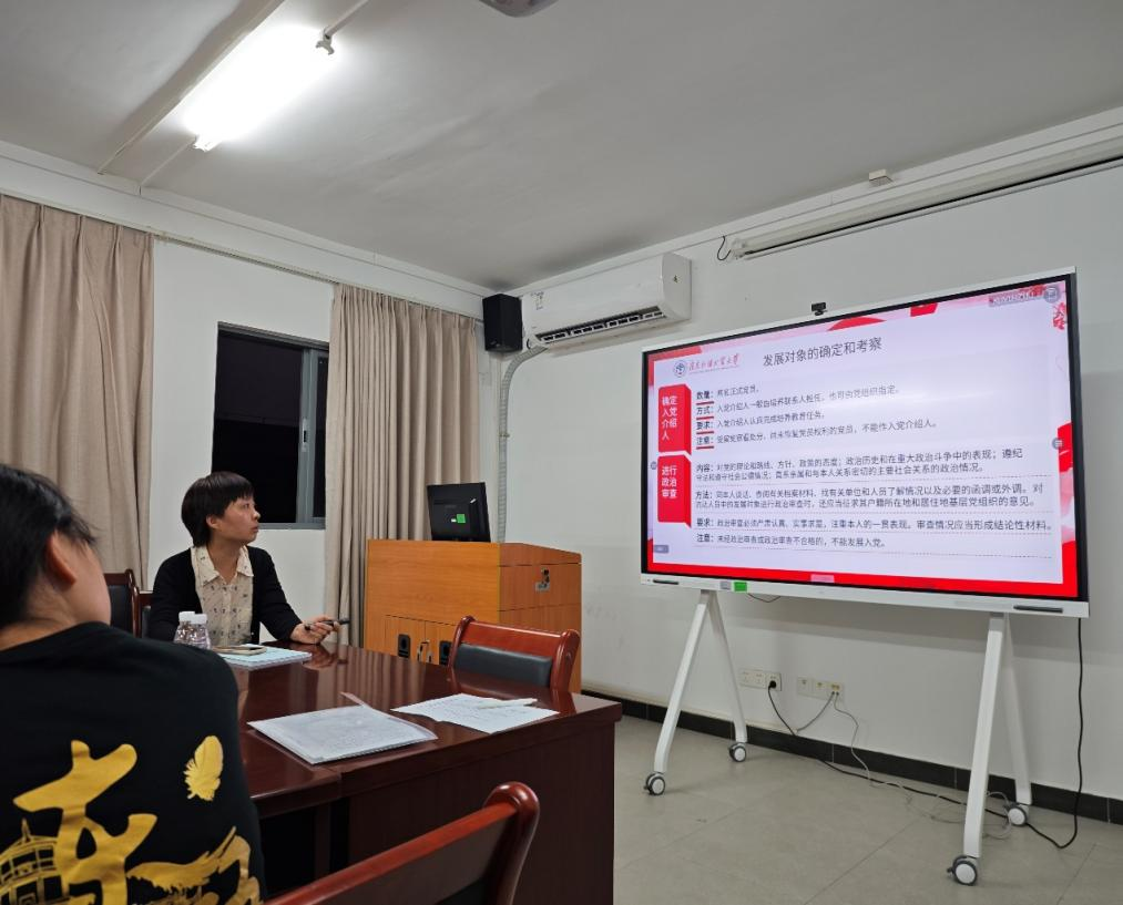 办公室主任兼组织员刘晓霞介绍入党程序和要求
