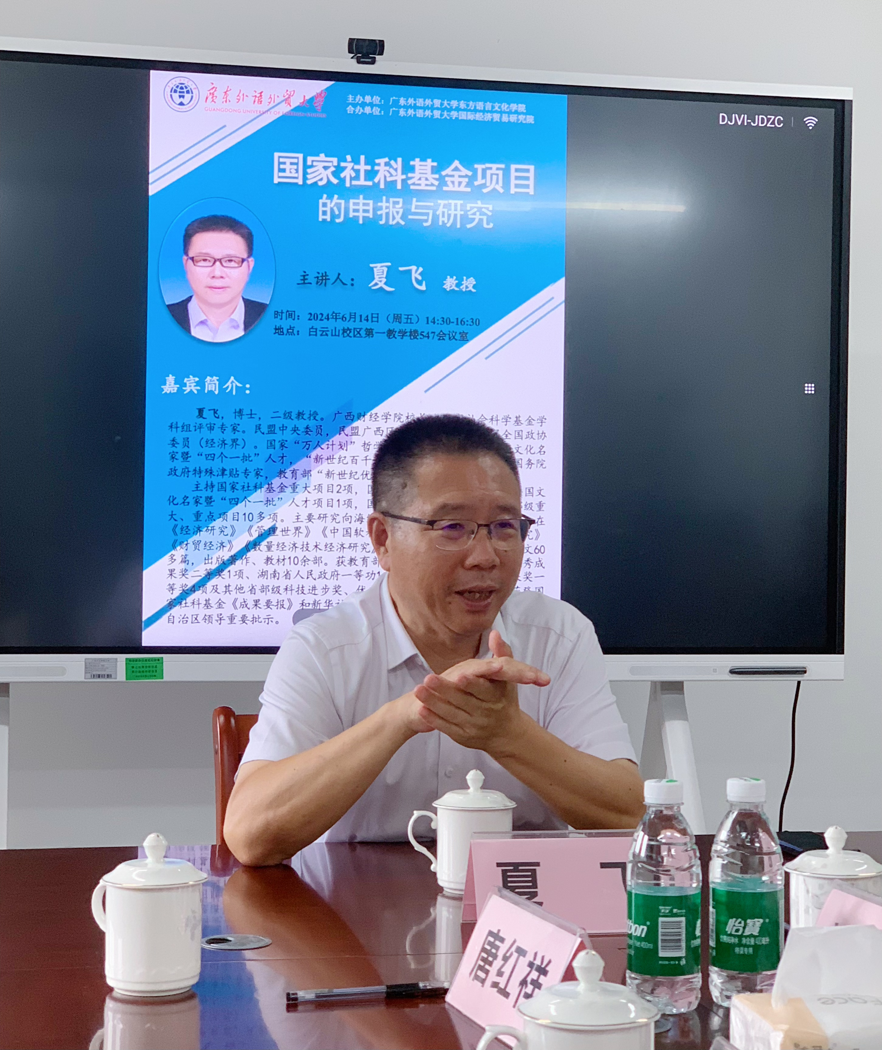 本网讯 2024年6月14日下午,广西财经学院校长夏飞教授应邀为伟德国际1949师生作了题为“国家社科基金项目的申报与研究”的讲座。本次讲座由东语学院主办,广外国际经济贸易研究院合办。