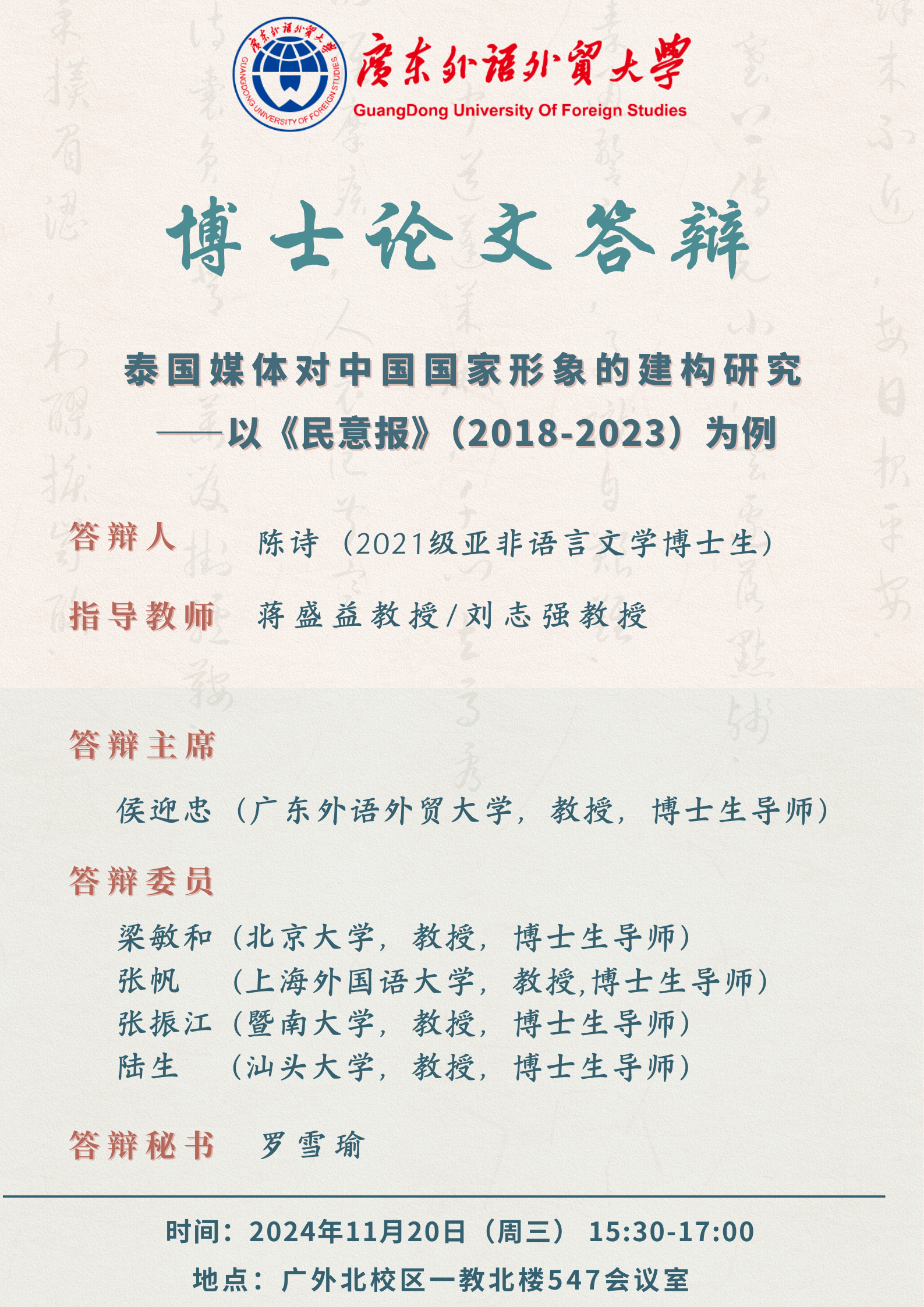 博士论文答辩|泰国媒体对中国国家形象的建构研究——以《民意报》(2018-2023)为例