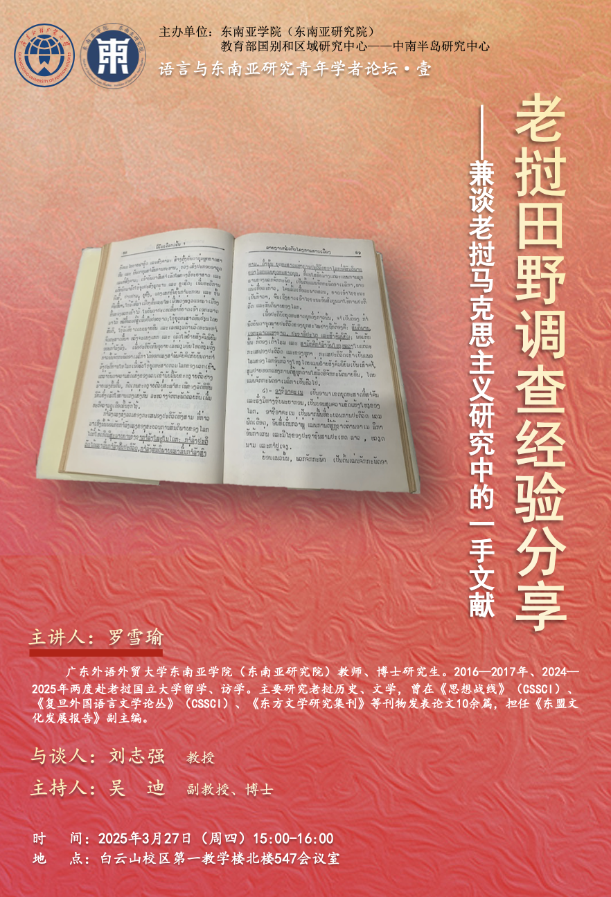 论坛预告|老挝田野调查经验分享——兼谈老挝马克思主义研究中的一手文献
