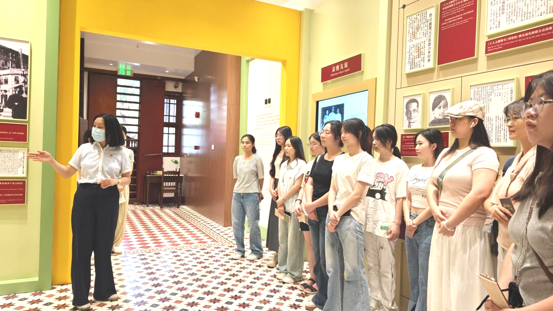 跟随讲解员的步伐,越南语系师生先后参观了“胡志明在广州”主题展、胡志明同志的卧室、越南青年革命同志会总部会议室、越南青年政治训练班教室以及越南第一张马克思主义报纸《青年》的印刷室等经过充分还原和精心维护的遗迹。展览墙上的中越双语材料,是历史的载本,同时也是越南语实践教学的最佳材料。