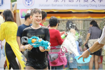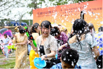 下午举办的第三届宋干节“宋干·送福”活动,参观的市民朋友们、中外嘉宾、广大师生、学生家长们欢聚一堂,以泼水送福,表达美好祝愿,欢快的气氛溢满了整个园区。