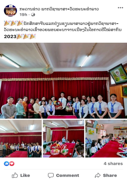 (老挝国立大学老挝语言文化系脸书即时发布)