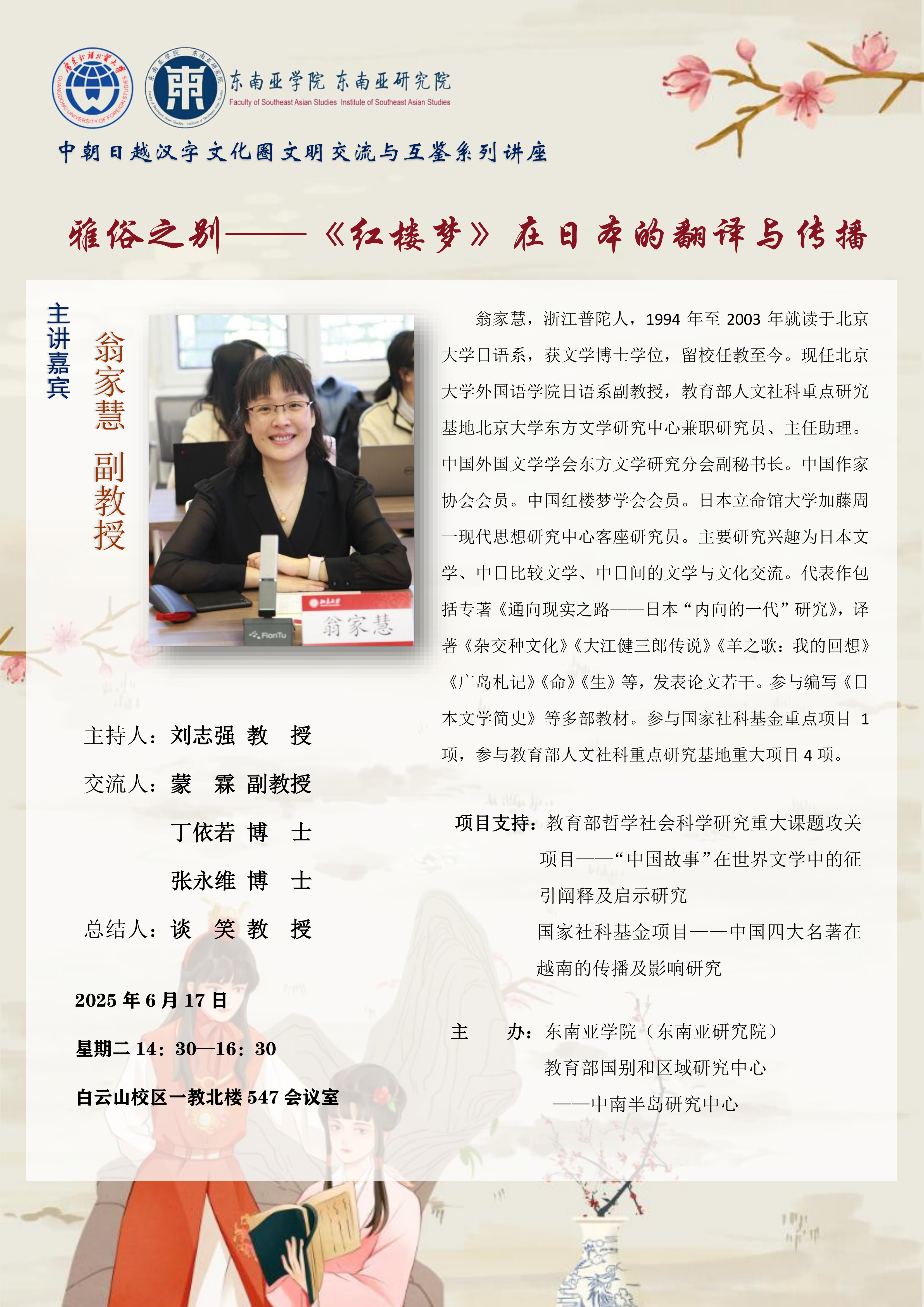 中朝日越汉字文化圈文明交流与互鉴系列讲座|翁家慧:雅俗之别——《红楼梦》在日本的翻译与传播